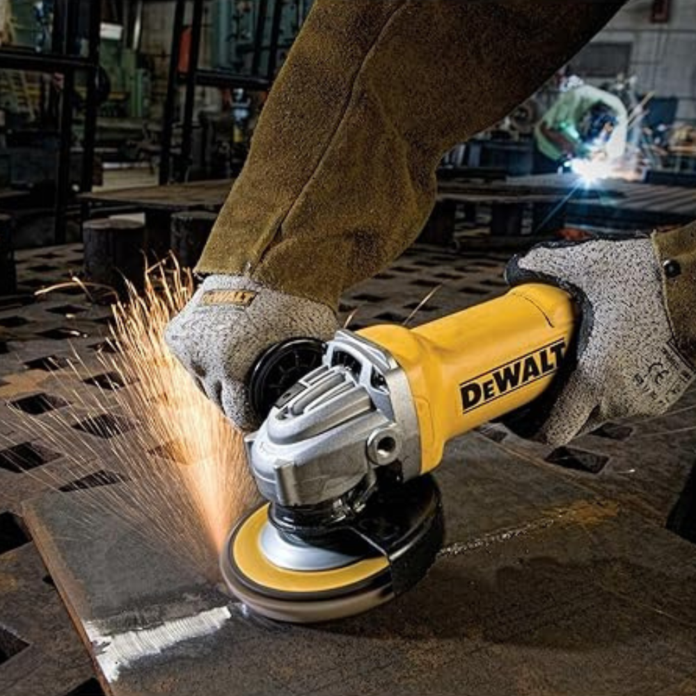 DEWALT DWE402 je robusna kutna brusilica nove generacije koja postavlja standarde u omjeru snage i težine. Opremljena je snažnim motorom od 11 Ampera (cca 1200-1300W) koji postiže 11.000 okretaja u minuti, što je čini idealnom za najteže zadatke rezanja i brušenja metala ili kamena.
